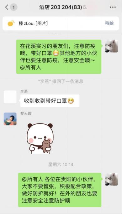 非常时期就像一面镜子,照亮了生命中许多细碎的光点。领导老师们深入宿舍给带给学生关怀;辅导员每天值班,时刻关注着在校生的身心状态;上网课时老师会询问大家的学习生活情况;每日一次的核酸检测也在有序进行……不同角色,同一使命,疫情面前,心存大爱,学院所有为了疫情而战斗的“我们”仍在坚守,相信前路光明,阴霾终会散去,无论哪里有需要,定会毅勇前行。