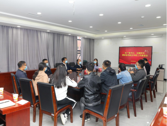 9月26日上午,党委书记宋广强、校长汤健深入航空学院调研指导工作并在科研楼117会议室与航空学院全体在校教职工召开座谈会。学校党政办公室、教务处、学工部相关领导陪同调研。