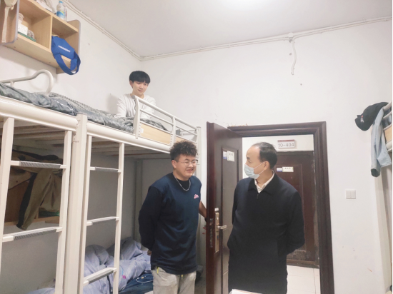 为深入了解学生思想动态、日常生活状况及宿舍卫生情况,11月2日晚,校党委副书记、校长汤健在航空学院党总支书记李江波等人的陪同下走访航空学院新生宿舍,为大一新生送去关怀和问候。