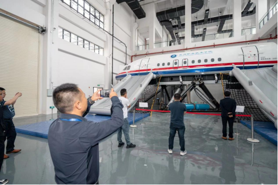 会议结束后,与会嘉宾参观了贵州省民航产教融合实训基地建设,体验了A320灭火模拟器、A320水上模拟器、A320翼上模拟器、A320客舱模拟器(动态舱)等。
