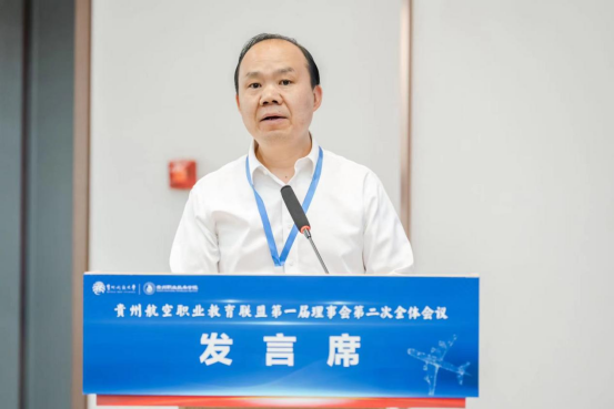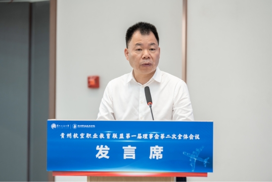 贵州开放大学(贵州职业技术学院)党委副书记、校长汤健在全体会议上致辞,他指出,贵州航空职业教育联盟秉持为联盟成员单位、贵州民航产业、贵州经济社会发展做好服务的原则和初心,坚持面向国家战略、社会亟需、产业发展,瞄准“真问题”,开展“真研究”,希望联盟不断稳固根基、汇聚力量,以服务产业和技术发展为导向,创新校企协同育人新途径,培养出更多的技能强、业务精、素质高、思想新的创新型人才。