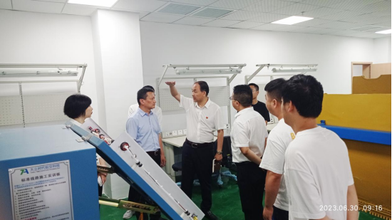 参观结束后,汤健在教学科研楼主持召开产业学院建设工作座谈会,在听取产业学院建设工作有关汇报后,他强调,要坚持以习近平新时代中国特色社会主义思想为指导,认真贯彻落实习近平总书记关于教育重要论述特别是关于职业教育重要指示精神,深入推进育人方式、办学模式、管理体制、保障机制改革,在产业学院建设方面取得创新突破。要进一步解放思想、大胆创新、勇于担当,要始终站在党和国家教育事业发展的角度,以更高站位、更大力度、更宽视野,先行先试,继续当好改革发展的排头兵、创新发展先行者,继续发扬敢为人先的改革创新精神,谋划好省级教学成果奖申报,继续凝练总结校企合作、产教融合经验,在推动职业教育类型定位方面积极探索。要深化现代职业教育体系建设改革,坚持面向市场、服务发展、促进就业办学,以培养区域经济社会迫切需要的高素质应用型、复合型、创新型人才为目标,努力培养更多高素质技术技能人才、能工巧匠、大国工匠,在推动学校高质量发展方面持续发力。